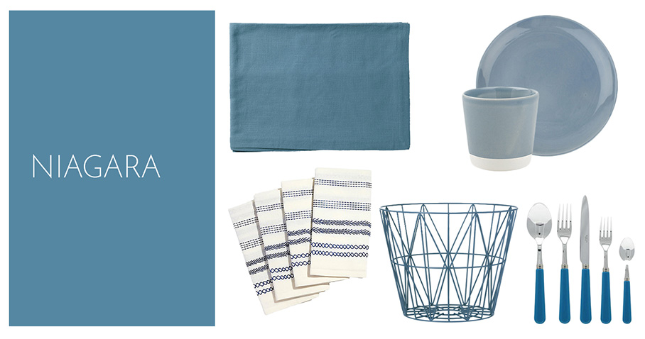 搭配建议:尼加拉蓝的彩度偏低,在秋冬的家居搭配时,可以考虑加一点暖色来中和。
