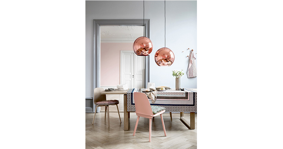 柔和的特性让淡山茱萸粉可以大面积地运用于墙面或是大型家具如沙发。