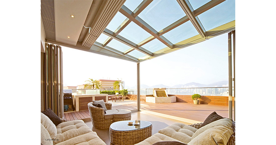 Tips:天幕帘多用吸热遮光的材质,通常安装于室内天窗、天井或是采光罩下方,有简易手拉式和电动遥控式。天窗的采光度极高,需要在天窗上安装天幕帘,增加遮光功能。