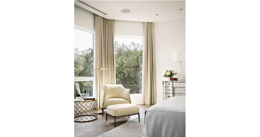 Tip1:窗帘与灯光怎么配合:当灯光偏暖时,搭配乳白色或米色窗帘。当灯光属于中性或偏冷时,选择米黄色、浅咖色偏暖色窗帘。