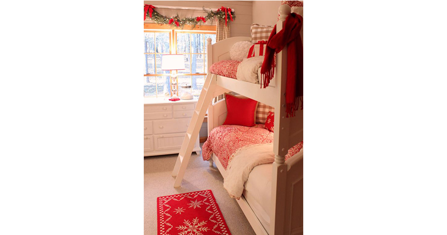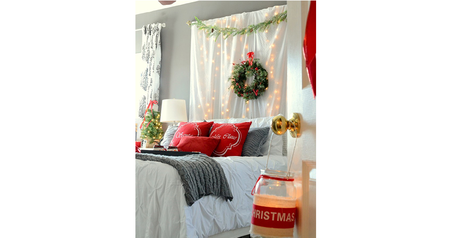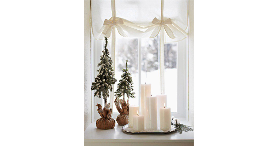 没有摇曳的烛光,平安夜就不完美。把窗帘的下边缘做成可以系成蝴蝶结的形状,和窗台的圣诞饰物稍稍组合,你就可以感受到最美的节日窗景。