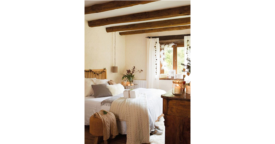 如果你是一个简约主义者,不喜欢复杂的装饰,那就试试把木质装饰物串在一起、悬挂在窗帘挂环上吧!搭配一点白色的羽毛,没有传统的圣诞元素,却同样拥有圣诞的梦幻氛围。