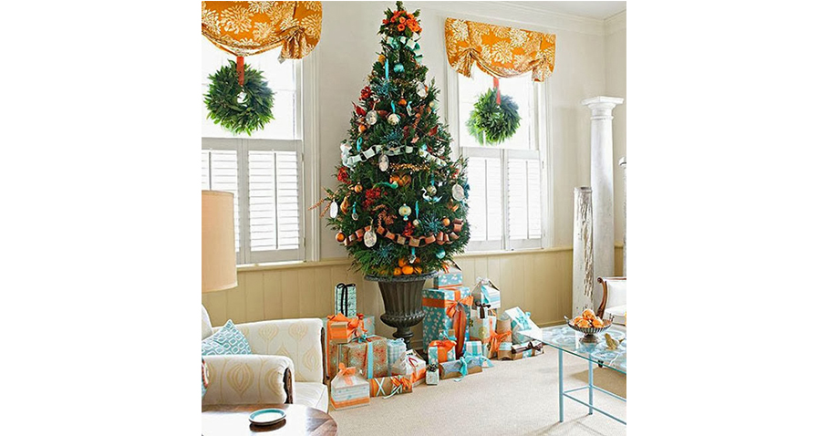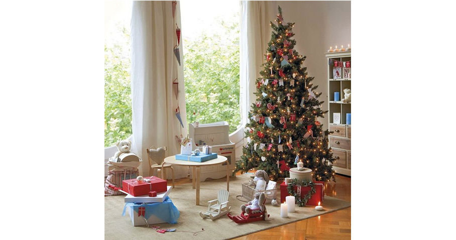 你的圣诞树足够个性吗?试一试用彩旗看看!用米色窗帘作为背景,搭配纯正英式风格最爱使用的红色和蓝色,英伦圣诞风格,一定能让这个夜晚变得不太一样。